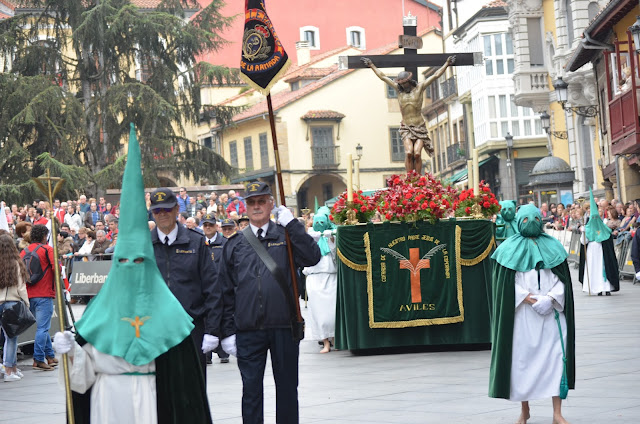 En la Plaza del Ayuntamiento los redobles de tambores y bombos de las Cofradías de la Semana Santa de Avilés sonaran, durante 15 minutos poniendo una nota trágica en la celebración de Semana Santa.
